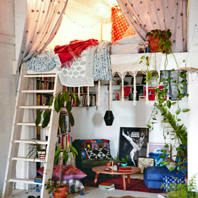 Лестница, ведущая к кровати, оборудованная множеством скрытых ящичков, которые запросто заменят громоздкий комод.