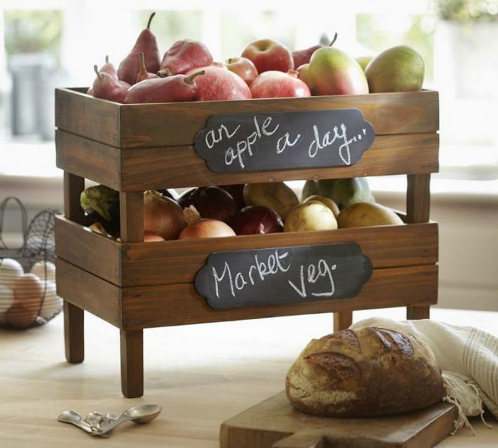 Симпатичные деревянные ящики для хранения фруктов и овощей.