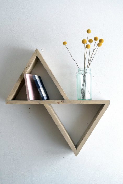 Треугольные настенные полки из дерева, которые впишутся в любой интерьер.