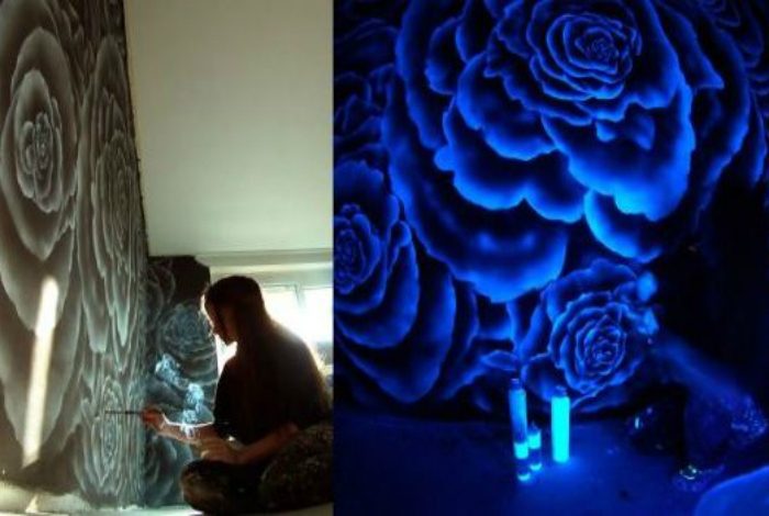 Картины, нарисованные с использованием люминисцентных красок помогут создать самобытную и мечтательную атмосферу в комнате.