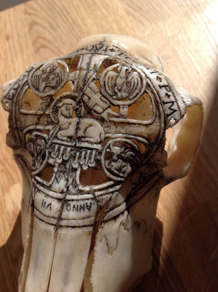 Это не само изделие как произведение искусства а просто человек набивает руку в резьбе по кости, Надлежащей кости нет а такую найти проще, вот он и тренируется.завитушки там всякие и прочее,