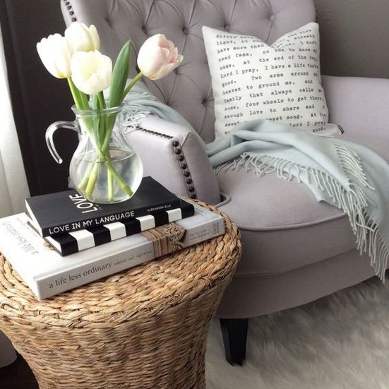 Кресло-качалка у камина или на балконе – это классика, которая будет уместна в скандинавском или деревенском интерьере. Придать характер плетёному креслу или пуфу помогут пледы, декоративные подушки или чехлы. Например, в стиле шебби-шик или винтаж будут уместны подушки с изображением нежных бутонов, а в кантри можно обойтись грубым шерстяным пледом. Для скандинавского интерьера идеальным решение станут шкуры животных или аккуратные плетёные коврики для пуфов.