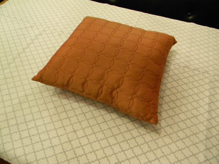Положите подушку по центру на изнаночной стороне ткани и начинайте.