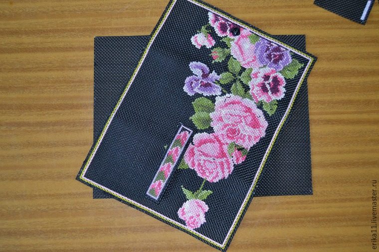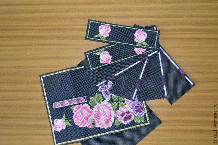 У меня кошелек уже вышит крестиком и, соответственно, все детали к нему также вышиты, осталось только собирать кошелечек.