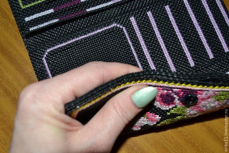 Процесс не из легких, особенно, в боковых частях кошелька, так как там нужно прошить сразу 4 канвы.