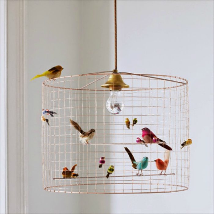 Ненужную птичью клетку можно превратить в изысканный плафон для люстры.