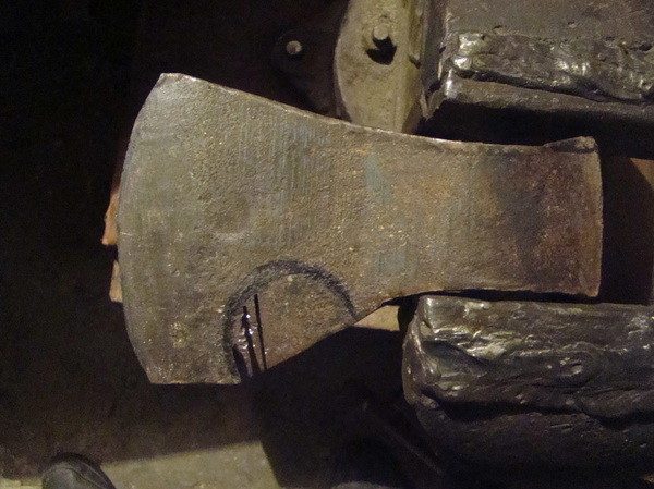 ВАЖНО: перед тем, как срезать режущую кромку (если это понадобится) — убедитесь что топор НЕ из составных частей.