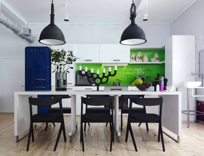 Обыкновенная светлая кухня может стать яркой и неповторимой благодаря красочным аксессуарам и мебели.