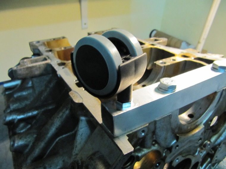 Начинаем опять все собирать назад, но уже в покрашенном виде. Прикручиваем профиль к блоку и колеса к профилю: