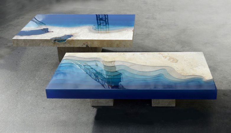 Как утверждает сам мастер, он никогда не согласится на серийное производство, ведь он уважает личность, характер каждого человека, а его неповторимость обязательно должна отражаться в дизайне мебели и интерьера дома в целом. Модель Lagoon 55 представляет собой журнальный столик из травертина и эпоксидной смолы, имитирующей лагуну.