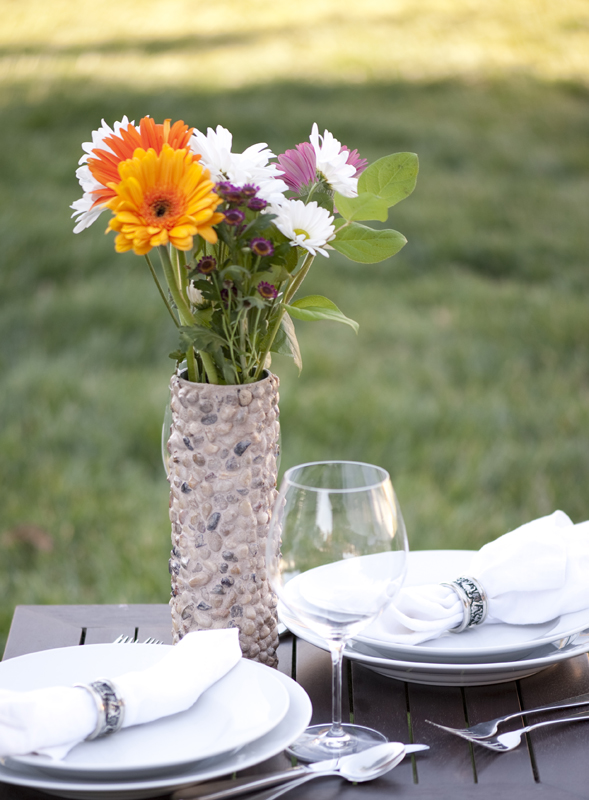 Как видите, сделать вазу своими руками довольно просто. Вместо гальки можно использовать плитку, кусочки мозаики, ракушки и пр.