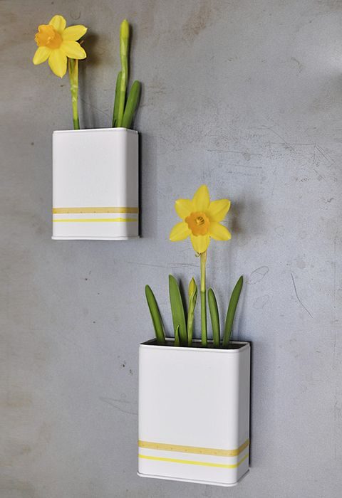 Весной принято украшать интерьер тюльпанами, нарциссами и другими весенними цветами. Чтобы они смотрелись ещё более эффектно, их следует поставить в интересную вазу. А такой предмет легко сделать и собственными руками. Для этого пригодятся стеклянные и керамические сосуды, банки и пустые бутылки из-под воды. В качестве декоративных элементов можно использовать цветную бумагу, скотч с рисунком, краски и виниловые наклейки.