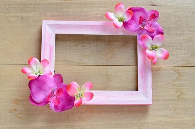 Обычную рамку можно преобразить с помощью нескольких искусственных цветков. Подробнее читайте здесь.