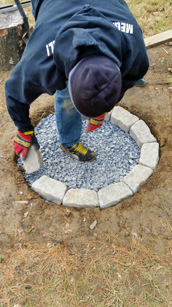 После насыпи укладываем 12 каменных блоков ( у вас может быть сколько угодно в пределах выкопанной окружности)