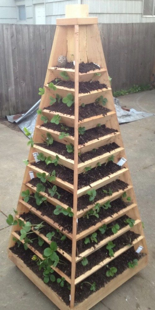 Соедините вертикально несколько горшков с цветами, а самый нижний поставьте на землю. Получится очень симпатично: