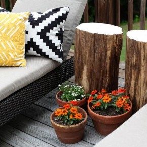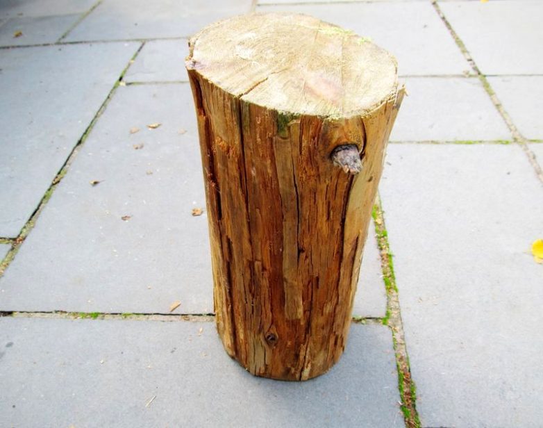 Для начала найдите подходящий пень для создания столика или тумбы. Это не так сложно даже если вы — сугубо городской житель без дачи. Во-первых, есть масса компаний, которые занимаются древесиной — лесозаготовки, лесопилки и так далее, можно приобрести у них спил дерева нужного размера. Во-вторых, советуем опросить всех знакомых и друзей, у которых есть дачи или родственники в селах, вероятно, у них есть заготовки на дрова или выкорчеванные пни. И, в-третьих, вы можете взять пилу, отправиться в ближайший лес, найти упавшее дерево и распилить его на части.