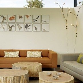 Жители больших мегаполисов с их бешеным ритмом жизни зачастую стремятся создать у себя дома островок спокойствия и расслабления, выбирая для оформления натуральные материалы, естественную цветовую палитру и декоративные элементы, созданные природой. Особое место занимают аксессуары и мебель из пней и стволов деревьев. Давайте посмотрим примеры использования цельных кусков дерева в интерьерах квартир разных стилей.