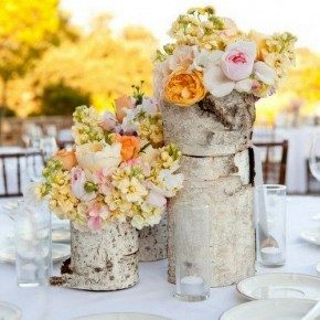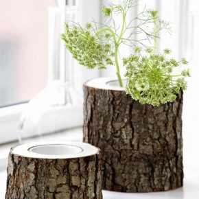 Древесину можно покрасить, покрыть аква-лаком или водоотталкивающей пропиткой. В случае, если вы используете пенек в качестве подсвечника — будьте предельно осторожны с огнем.Несколько вариантов подсвечников и вазочек из ствола дерева — ниже.