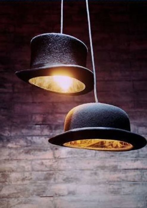 Из чего только сегодня не делают предметы мебели, в поле зрения дизайнеров попадает всё, даже одежда. Примером тому являются эти стильные и оригинальные светильники, у которых роль абажуров выполняют шляпы в ретро-стиле.