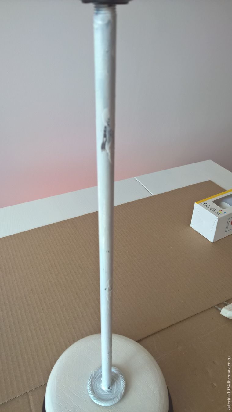 Поэтому пришлось срочно искать замену. Наждачкой сняла акрил и вернулась к белой краске для мебели, а стержень покрашен специальной краской для металла, теперь уже в черный цвет.