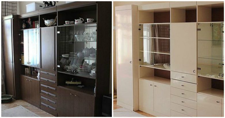 Интересно бывает взглянуть на то, как новый цвет меняет привычный облик старой советской стенки