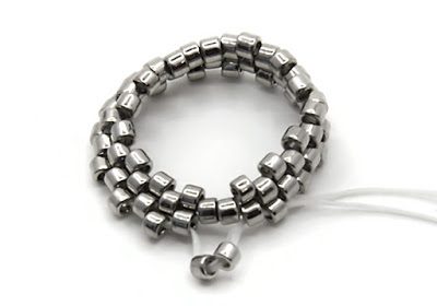 2. Набираем 31 бисерину Delica. Формируем такую петлю и затягиваем, бисерины подтянутся друг к другу, и мы получим бисерный круг.