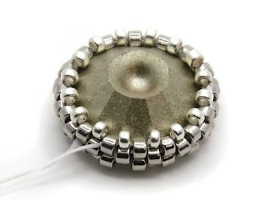 20. Проплетаем мозаичным плетением последний ряд. Для этого ряда я взяла прозрачный бисер, он подойдет к кристаллу выбранного цвета. Не забываем стягивать нить.