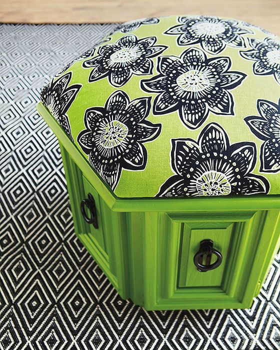 Когда-то эта тумба украшала интерьер в классическом стиле, но это было уже давно, и предмет мебели явно потерял изначальный шик. Поэтому его решили освежить при помощи светлой зелёной краски, а также сделали тумбу более функциональной, добавив на верхнюю её часть мягкую подушку.