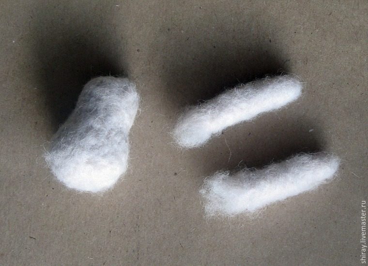 Формируем тельце кролика. Наращиваем из двух одинаковых комочков шерсти бедра.