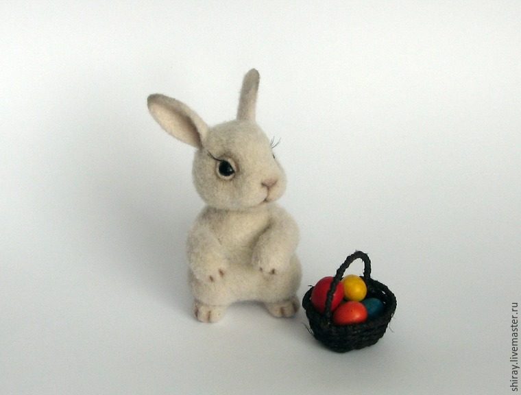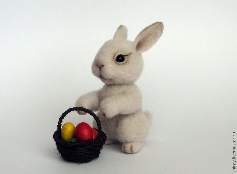 Предлагаю порукодельничать и свалять из шерсти маленького кролика с корзинкой пасхальных яиц.