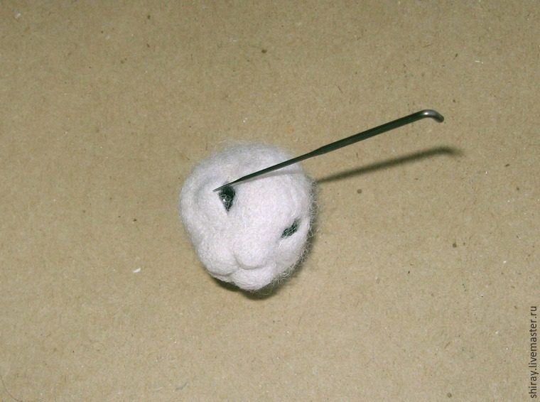 Таким же образом приваливаем верхние веки. Ориентируясь на фото кролика проработаем иголочкой (№36) черты мордочки.