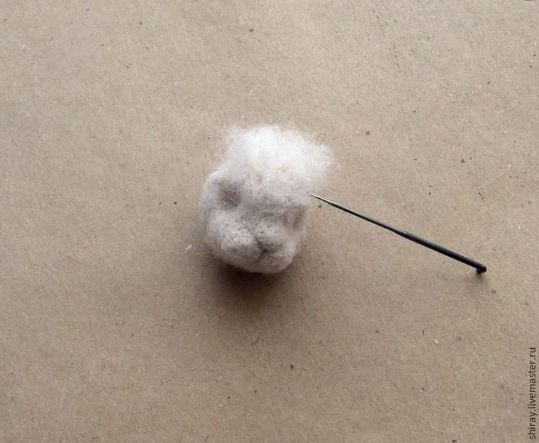 Наращиваем (игла №38) распушенными комочками шести щечки, лоб и носик.