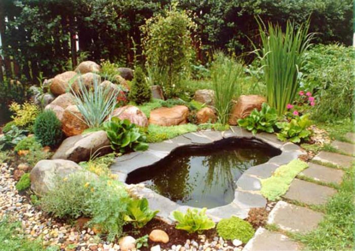Обыкновенные камни и крупные валуны прекрасно подойдут для оформления декоративного водоема на дачном участке.