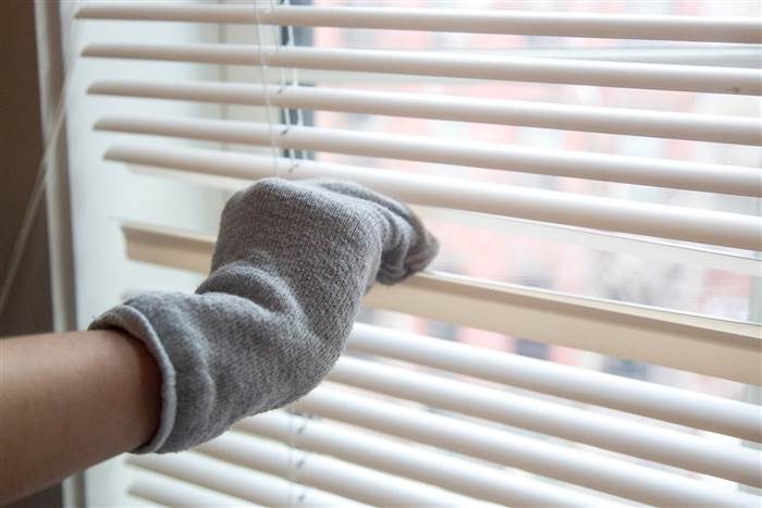 Самый лучший инструмент для уборки проблемных мест – рука. Натягиваем на неё влажный носок и быстренько убираем грязь и пыль с жалюзи.