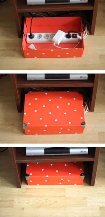 2. Или спрячьте переходник в симпатичную коробку, сделав в ней отверстия для проводов. И ничего не будет путаться под ногами!