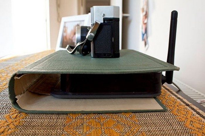 8. Не самый эстетичный вид роутера и его хрупкие провода можно защитить с помощью обложки от книги