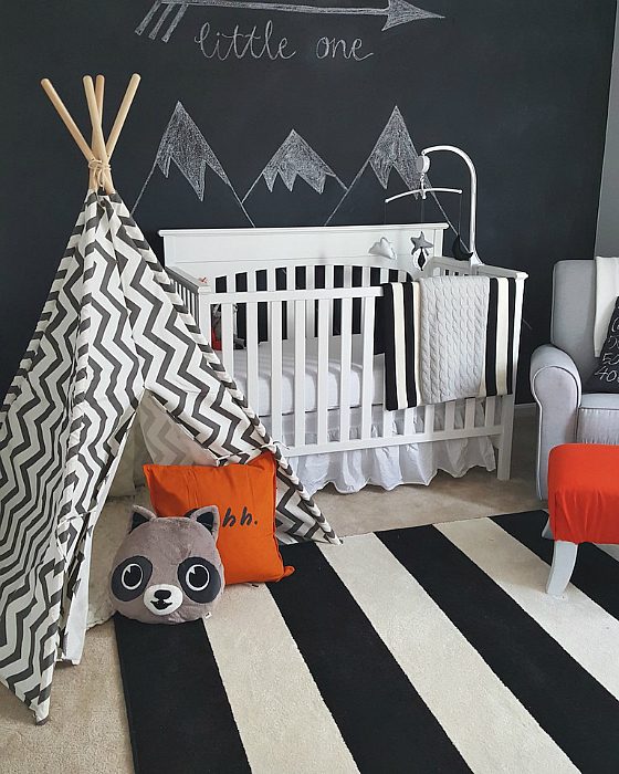 Грифельная доска в детской позволит проявлять свою фантазию в полной мере. Рисуя различные картины, можно практически ежедневно менять интерьер детской.