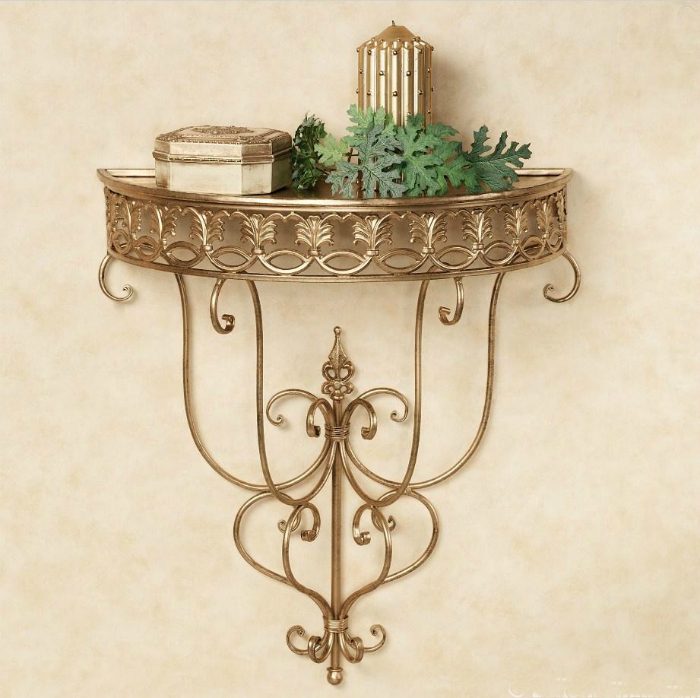 Элегантная кованая полка золотистого цвета в стиле необарокко.