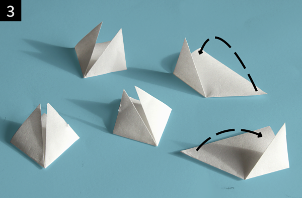 3. Сложите внешние углы треугольника вверх по направлению к центру угла, получая квадраты.