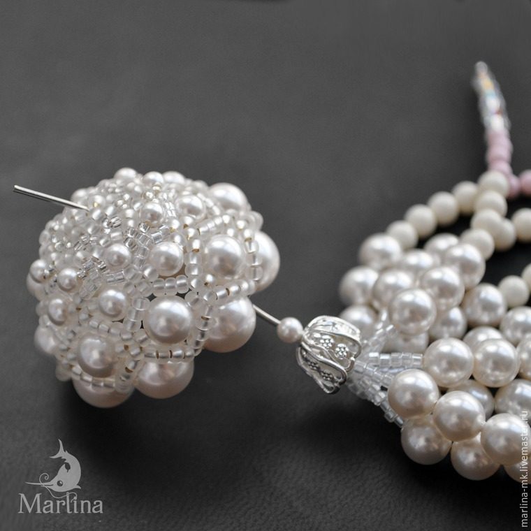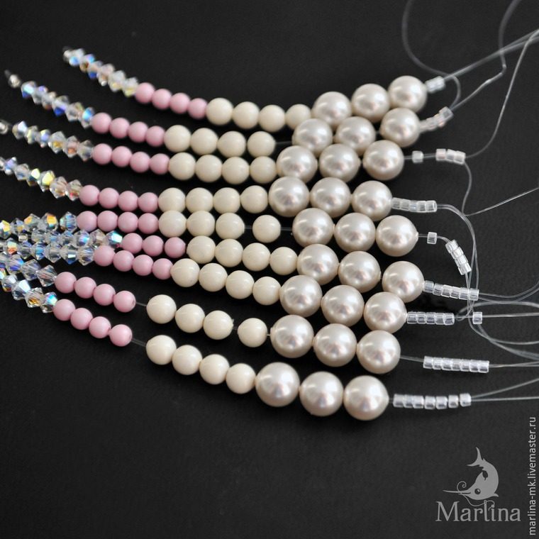 Для головы медузы понадобится жемчуг Swarovski, цвет White: 8 мм; 6 мм; 4 мм; 3 мм — по 8 шт. каждого. А также: