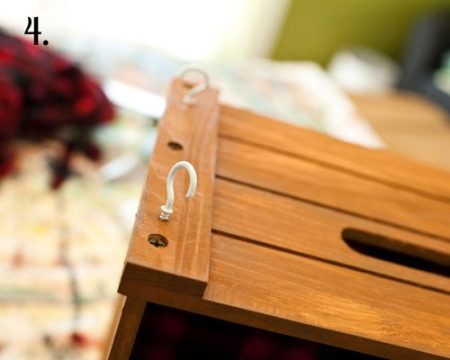 4: Сверху слева и справа прикрутите по два крючка, на которые Вы потом можете подвесить длинные цепочки.