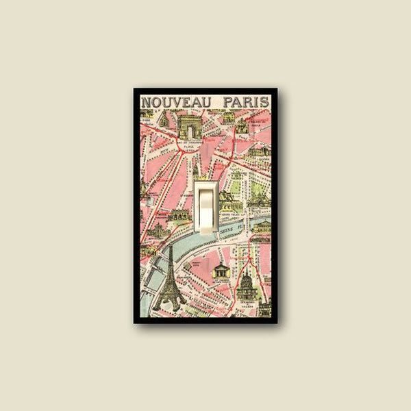 Разнообразные салфетки, географические карты, цветная бумага, газетные и журнальные вырезки можно наклеить на выключатель, используя технику декупажа.
