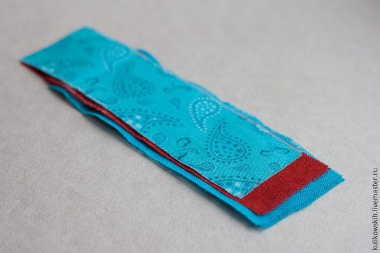 Из цветных лоскутов подготовьте 5-7 полосок «воротничков» (размер примерно 5*10 см). Верхний край полоски подверните внутрь на 1 см. Оберните первый воротничок вокруг шеи куклы. Чтобы воротнички в процессе работы не смещались можно каждую последующую полоску закрепить ниткой. Таким же образом закрепляем все последующие воротнички, смещая каждый на 5-7 мм ниже предыдущего.