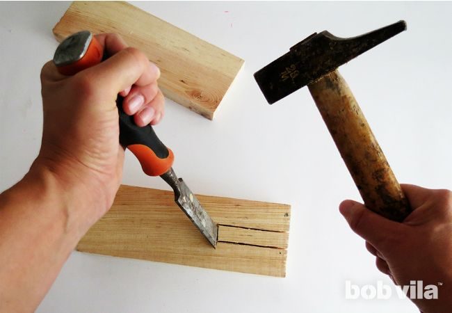 ⇒ Шаг 2. Используя зубило и молоток, вырежьте это отверстие. Края зачистите наждачной бумагой.