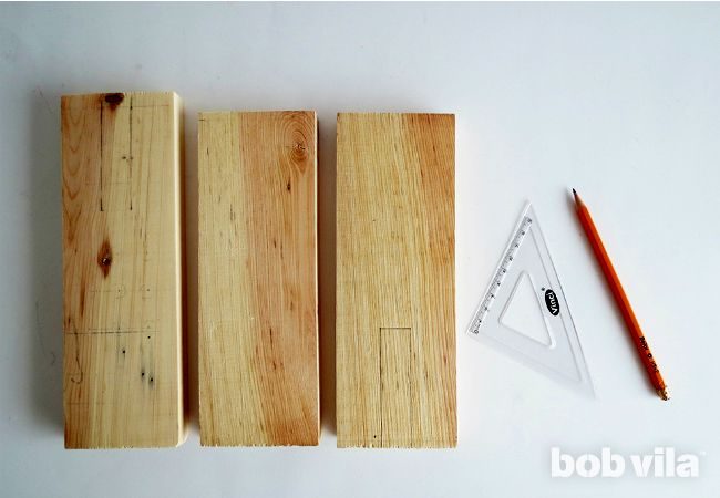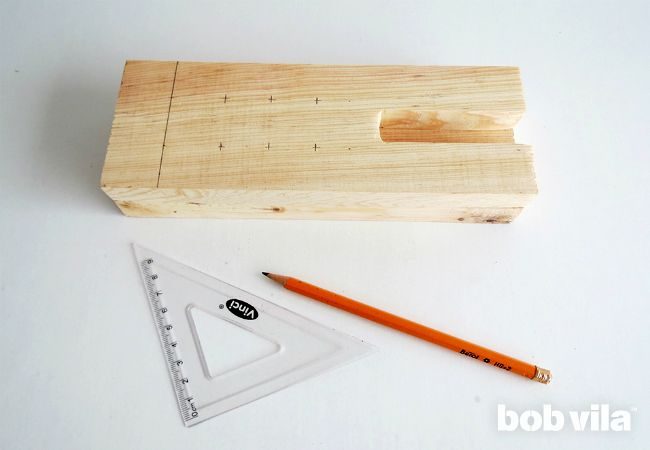 Начертите на верхнем бруске (на одном из тех двух, которые одного размера) с помощью линейки и карандаша прорезь для смартфона.