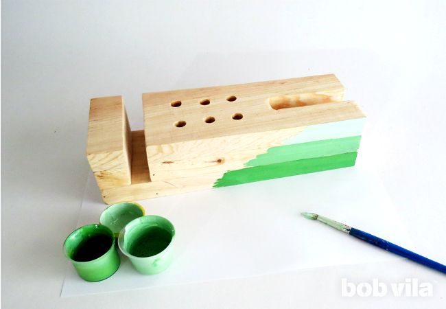 ⇒ Шаг 7. Время для декора! Органайзер почти готов, осталось его только раскрасить! Очень красиво смотрится плавный, градиентный переход оттенков. В данном примере использовались оттенки зеленого, от светлого к темному.