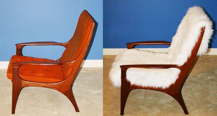 Иногда достаточно лишь поменять обивку или сделать интересный чехол, как стул или кресло преобразится. В случае с этим предметом мебели, его особо переделывать не стали, лишь закрепили на нём шкуру, которую обычно используют для декора пола. Такая мебель отлично вписывается в скандинавский интерьер.