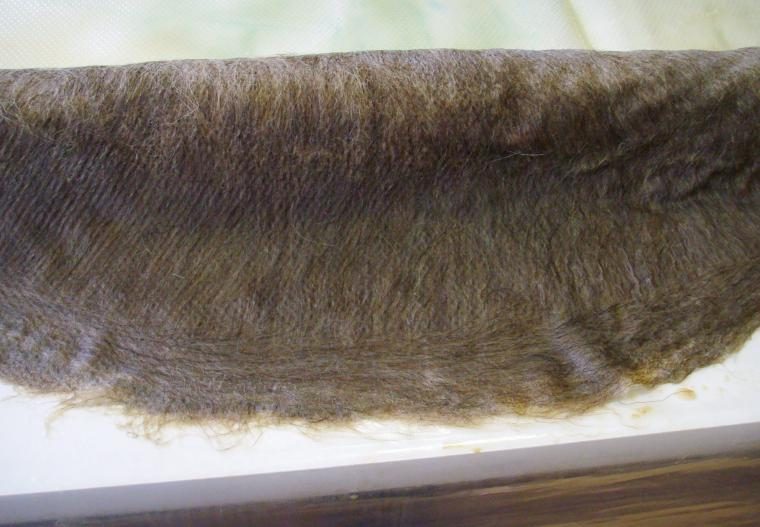Здесь 5 довольно плотных слоёв шерсти. Слои чередуются по направлению. Первый слой был как и верхний на фотографии ниже (когда прядки шерсти расходятся от центра).