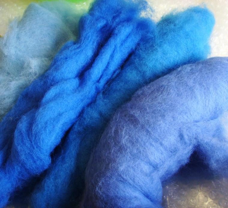 Итак, я взяла 3 вида грубой неокрашеной шерсти в гребёной ленте и несколько видов ровницы.
