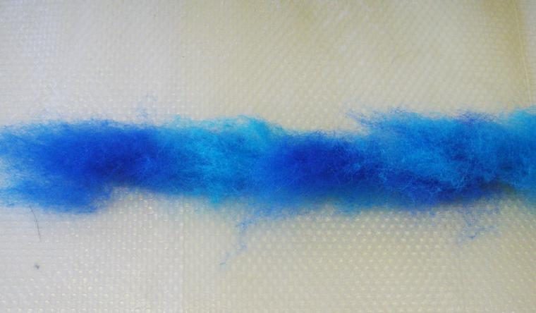 Этот момент я не зафиксировала — но я также лёгкими прядками шерсти прикрыла валяные жгуты и ровницу в разных местах (особенно в местах срезов нити).